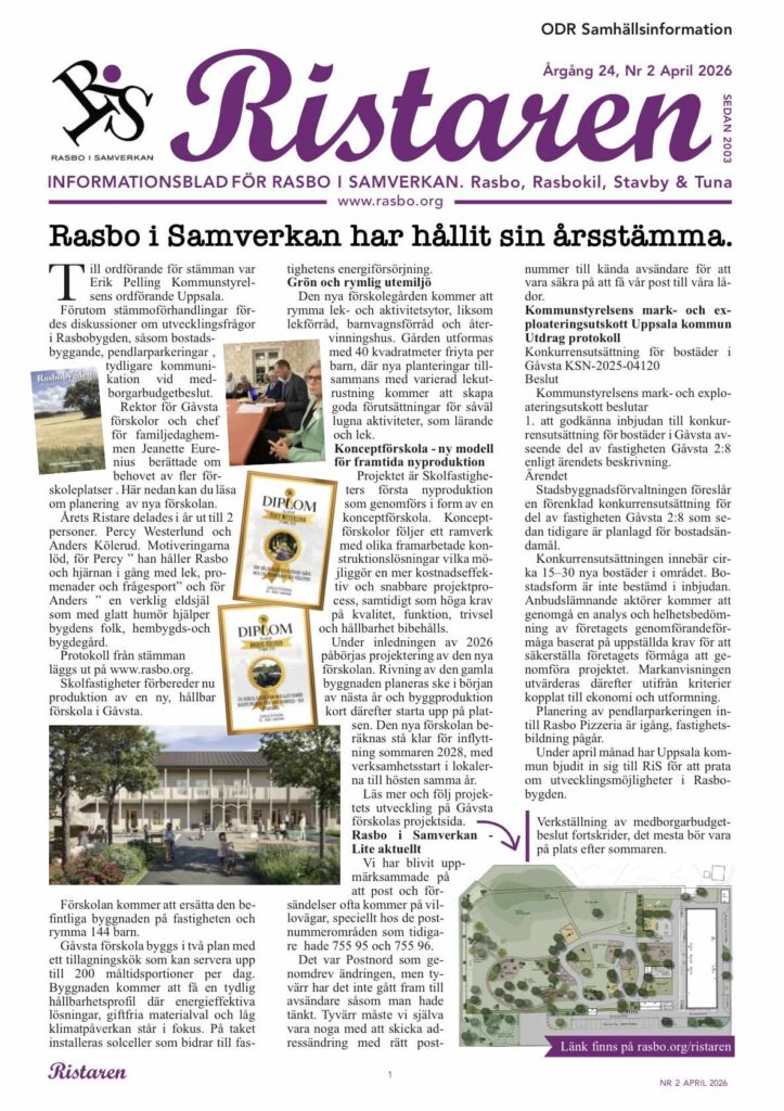 Är du nyfiken på vår bygd och vad som händer här? RiS presenterar livet i rasbobygden i en omfattande bygdeskrift med titeln ”Rasbobygden Nu och då”. Läs eller ladda ned här